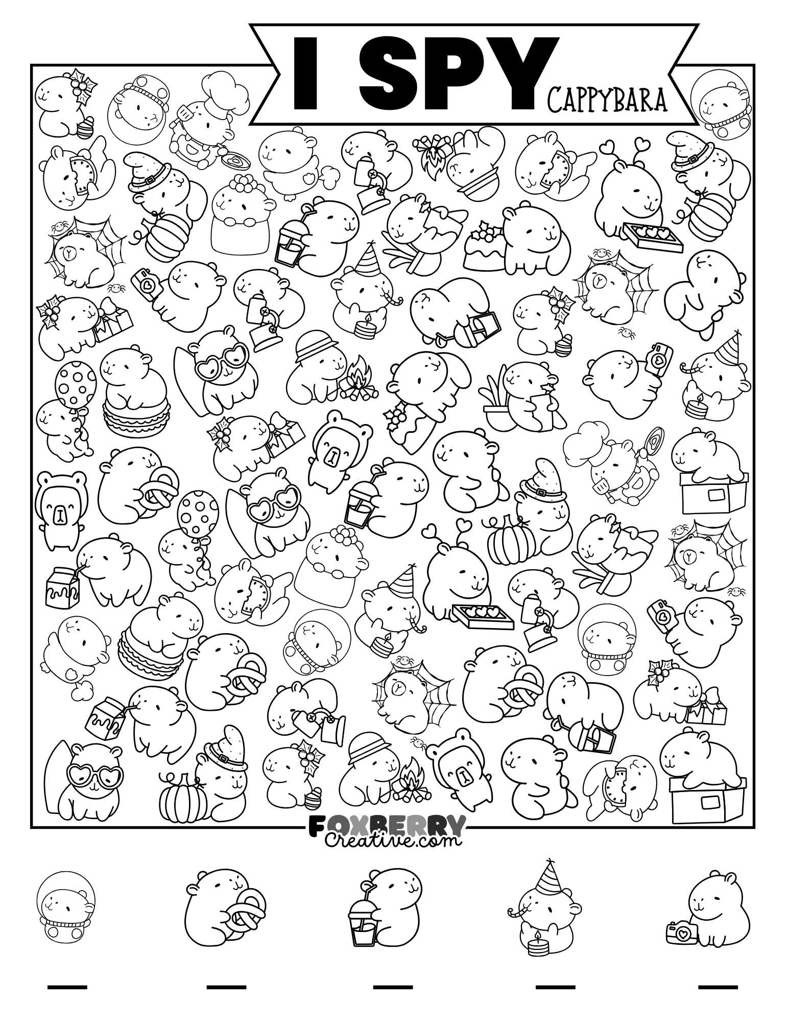 Download Your Free Capybara I Spy Coloring Page