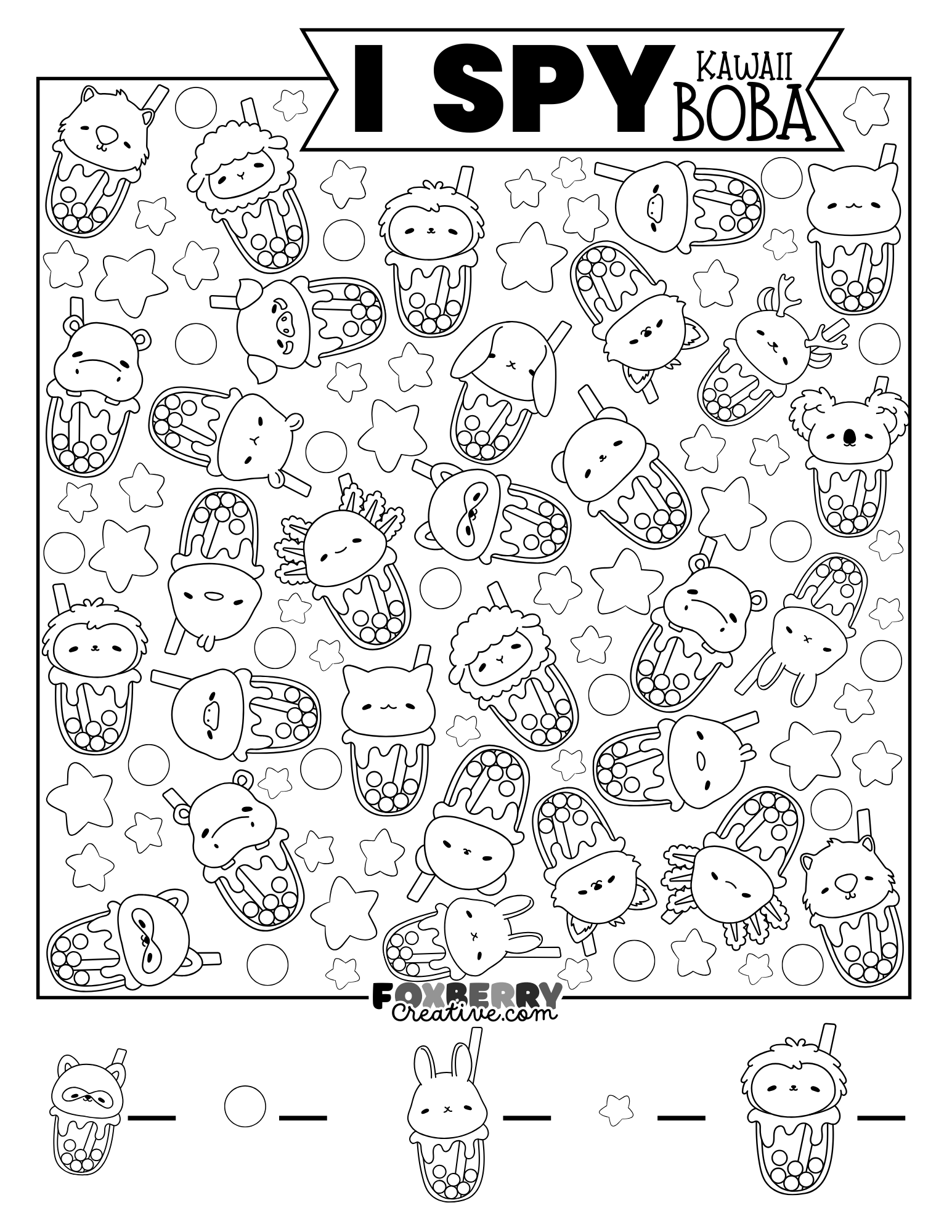 Kawaii Animal Boba I Spy Coloring Page